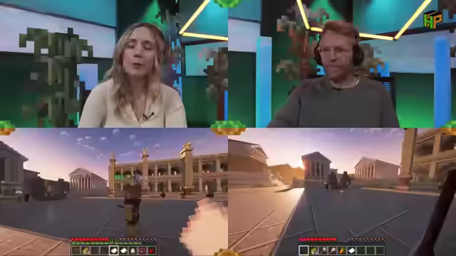 00:11:09Die Moderatoren stellen eine „Druckermaschine“ vor, über die der Chat für Punkte Nachrichten oder Fragen senden kann, die dann ausgedruckt werden. Dies wird humorvoll als „Museumsstück“ und „Fax“ bezeichnet, passend zum Klischee der öffentlich-rechtlichen Sender. Die Funktion ist zunächst deaktiviert, soll aber später im Stream genutzt werden. Die Reise in die Minecraft-Welt beginnt, die das antike Rom nachbildet. Nils äußert sich überrascht über sein Römer-Outfit und seine Rolle als „Centurion“. Die erste Aufgabe ist es, die Umgebung zu erkunden und herauszufinden, wo sie sich befinden. Nils identifiziert die Umgebung als Rom und verwechselt humorvoll einen Triumphbogen mit einer Pommesbude. Eine Interaktion mit einem NPC namens Lucius Opticus, der Linsen verkauft, scheitert zunächst, da er nur Latein versteht. Der Chat wird um Hilfe gebeten, um das lateinische Wort für Linse zu finden. Nach einigen Fehlversuchen und einem Fax mit „Vini Vidi Vici“ wird schließlich „Lentes“ als richtiges Wort identifiziert, und Nils erhält eine Brille, die seine Sicht in der Minecraft-Welt verbessert.