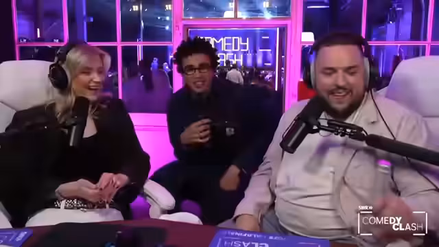 01:58:21Es wird angekündigt, dass es vor Simon noch ein weiteres Stand-up geben wird, einen Comedian, der nicht auf dem ursprünglichen Plan stand und außer Konkurrenz auftritt. Eventuell hat man ihn schon im Laufe des Abends gesehen. Für die nächste Show, die am 6. Mai in Stuttgart stattfindet, können Tickets im Chat gewonnen werden. Stichwort: Ausrufezeichen gewinnen. Merle wird nicht mehr dabei sein, um anderen eine Chance zu geben. Es wird betont, dass die Gewinner auch nach Stuttgart kommen müssen. Es folgt ein kurzer Talk über Dialekte und Brezeln. Anschließend wird der Surprise-Comedian angekündigt: Der Gewinner der allerersten Staffel Comedy Clash, MV. Envy betritt die Bühne und beginnt sein Stand-up über Unterschiede zwischen Männern und Frauen, insbesondere im Bezug auf Mode und Verhalten beim Friseur.