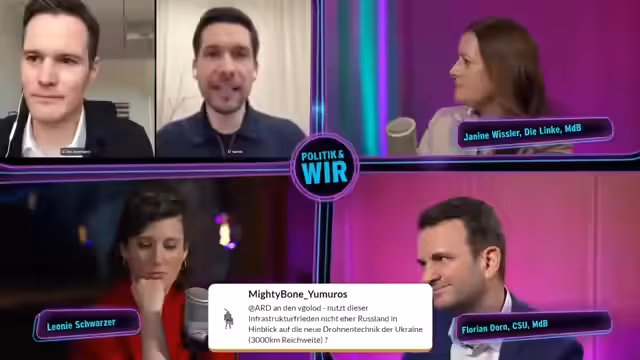 00:09:24Der ARD Community Talk "Politik und wir" thematisiert die Entscheidung des Bundestages über milliardenschwere Schulden für Verteidigung und Infrastruktur, einschließlich einer Grundgesetzänderung. Diskutiert werden die Auswirkungen auf zukünftige Generationen und die Notwendigkeit solcher Maßnahmen angesichts globaler Herausforderungen. Die Zuschauerbeteiligung zeigt ein gespaltenes Meinungsbild, wobei viele die Investitionen in Verteidigung und Infrastruktur befürworten. Janine Wissler von der Linken kritisiert die Aufrüstung, während Florian Dorn von der CSU die Notwendigkeit der Verteidigungsfähigkeit betont. Wissler bemängelt, dass die Chance vertan wurde, die Schuldenbremse grundlegend zu reformieren, und kritisiert die Fokussierung auf Aufrüstung gegenüber Investitionen in Bildung und Soziales. Dorn hingegen argumentiert, dass die veränderte weltpolitische Lage dringendes Handeln erfordert, um die Verteidigungsfähigkeit Europas zu gewährleisten und ein klares Signal an die Partner zu senden. Er betont, dass fiskalische Nachhaltigkeit wichtig ist, aber die Sicherheit und Verteidigung der Freiheit Vorrang haben.