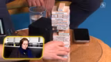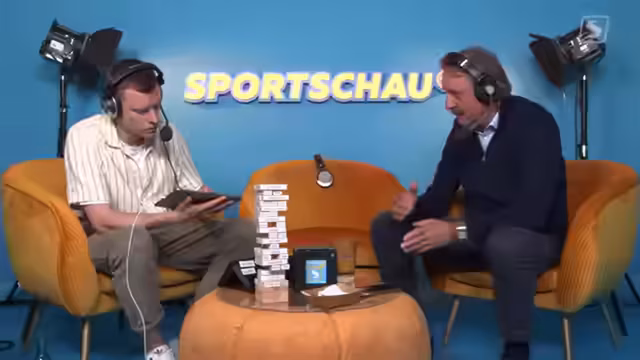 01:27:52Borussia Dortmund gleicht durch einen Treffer des Rechtsverteidigers in der 24. Minute zum 1:1 gegen RB Leipzig aus. Der Ausgleichstreffer verhindert den Kollaps des interaktiven Turms, doch nur kurz darauf droht das Desaster. Als der Ball ins Aus geht, ist kein passender Holzklotz mehr verfügbar. Der Turm beginnt zu kippen und Moderator Malte Fölz ist gezwungen, den peinlichen Zettel aus der Redaktion vorzulesen und damit das interaktive Spiel zu verlieren.