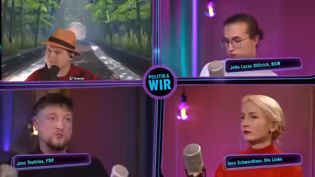 00:10:00Der Stream beginnt mit einer Begrüßung zur speziellen Bundestagswahl-Ausgabe von 'Politik und wir'. Die Moderatorin stellt die drei Gäste vor: Ines Schwertner (Die Linke), Jens Teutrine (FDP) und John Lukas Dittrich (BSW). Alle drei Parteien hoffen, die Fünf-Prozent-Hürde zu überwinden. Die Zuschauer werden aufgefordert, sich im Chat zu beteiligen und Fragen zu stellen. Ines Schwertner äußert sich optimistisch bezüglich der Chancen der Linken, während Jens Teutrine trotz schwieriger Umfragewerte seine Motivation betont. John Lukas Dittrich schildert die positive Stimmung und Unterstützung, die das BSW im Wahlkampf erlebt. Die Schwerpunktthemen des Abends werden Migration, Wirtschaft und Soziales sein.