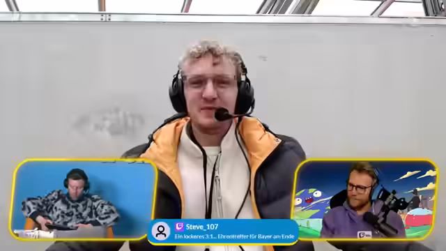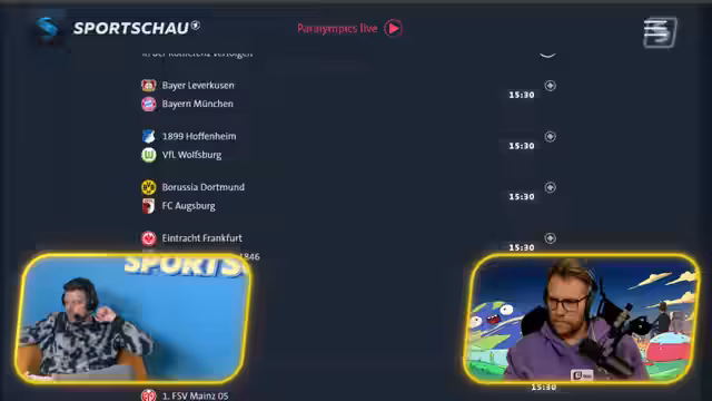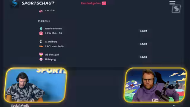 00:04:57Der Stream gestaltet sich als eine Live-Übertragung des 26. Spieltags der Fußball-Bundesliga auf dem ARD Twitch-Kanal. Gastgeber begrüßt die Zuschauer und stellt den Co-Moderator Nils von den Rocket Beans vor. Die Agenda umfasst die Diskussion von aktuellen Spielen, Analyse von Aufreger-Themen und den Überblick über die Bundesliga-Tabelle. Die Moderatoren versprechen, schnellere Informationen als Pay-TV-Anbieter zu liefern und beziehen die Chat-Community aktiv in die Sendung ein.
