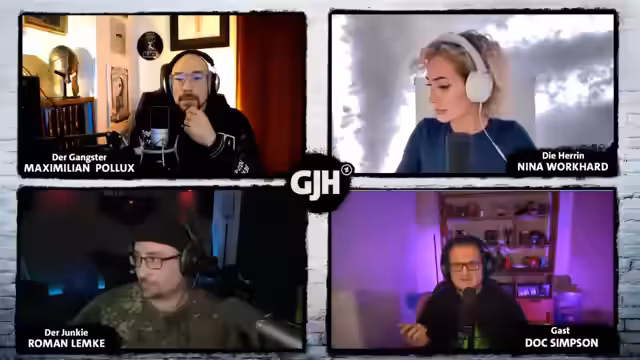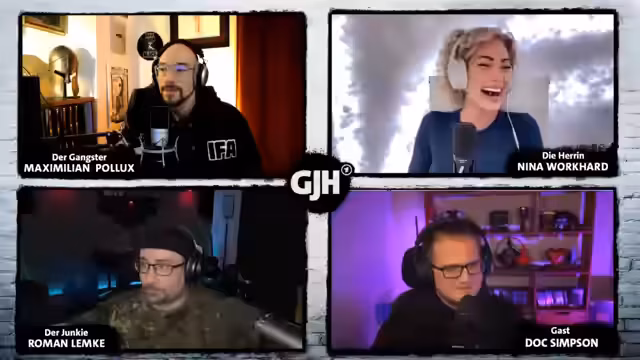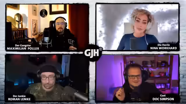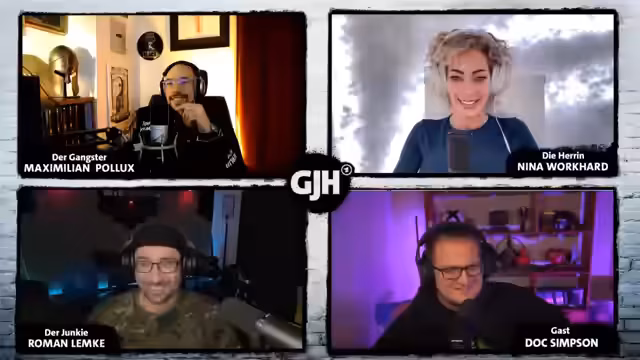 00:10:15Die Sendung 'Der Gangster, der Junkie und die Herrin' startet mit einem neuen Intro und stellt die Crew vor. Nina Workhard, hauptberufliche Domina, spricht über ihre Arbeit in der Fetischwelt und die Akzeptanz verschiedener Neigungen. Max, der Ex-Gangster und Medienprofi, thematisiert seine Vergangenheit und seine Arbeit in der Prävention mit seinem Podcast 'Sucht und Ordnung'. Er spricht über seine Erfahrungen mit Sucht und seine Arbeit in Schulworkshops. Roman, der Dritte im Bunde, erwähnt, dass die heutige Episode sein neues Rennrad finanziert. Die drei stellen Doc Simpson als Gast vor, der als Gamer und Content Creator mit ADHS-Erfahrung vorgestellt wird. Doc Simpson, bürgerlich Patrick, erzählt von seinem Job als Manager, seiner Familie und seiner Leidenschaft für Gaming seit seiner Kindheit.