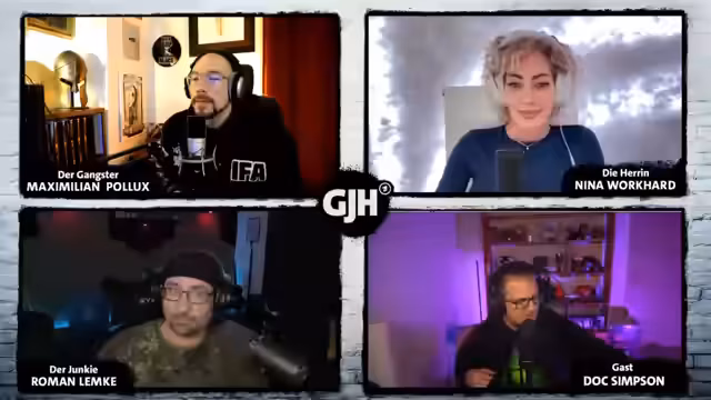 00:10:15Der Stream beginnt mit einem neuen Intro auf dem ARD-Quatschkanal bei Twitch. Die Moderatoren Nina Workhard, Dominar mit langjähriger Erfahrung im BDSM-Bereich, und Max, ehemaliger Gangster und Podcaster des Formats 'Flecktarn-Podcast', begrüßen die Community. Sie stellen sich und ihre jeweiligen Hintergründe vor, insbesondere ihre gemeinsame Leidenschaft für die Aufarbeitung skurriler Anfragen und Themen im Kontext von Kriminalität, Fetisch und psychischen Erkrankungen.