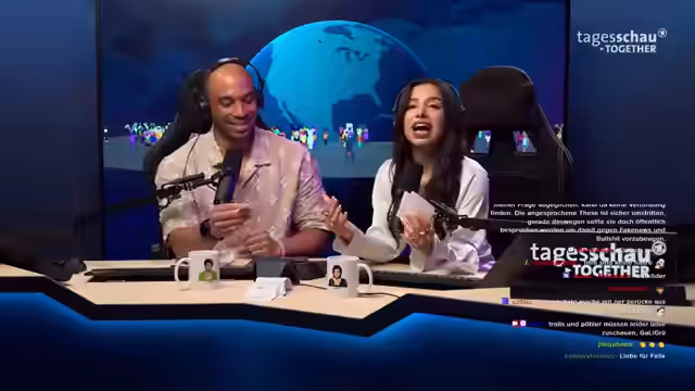 00:15:19Die Moderatoren Hanin und Felix begrüßen die Zuschauer zurück bei Tagesschau Together, dem interaktiven Nachrichtenformat der Tagesschau. Sie kündigen zwei aktuelle Themen an: die Auseinandersetzung innerhalb der Koalition über das neue Wehrdienstgesetz und die geplanten EU-Chatkontrollen zur Bekämpfung sexualisierter Gewalt gegen Kinder. Zuschauer werden aktiv zur Stellungnahme zum Wehrdienst aufgefordert und auf weitere Plattformen wie YouTube und Instagram hingewiesen.