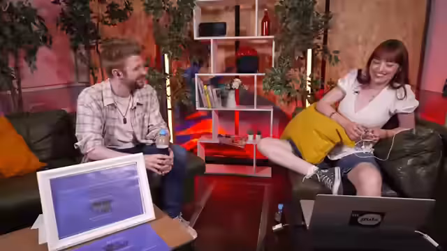 01:32:27Zu Beginn des Streams führen die Moderatoren ein absurdes Quiz durch. Die Gesprächspartner diskutieren über professionelle Moderationskarten, die in Wirklichkeit leere Blätter sind. Nach der Quizrunde erhalten beide Teilnehmer eine humorvoll gestaltete Teilnehmerurkunde, die sie mit ironischen Dankesreden und augenzwinkernden Kommentaren zur Bestätigung ihrer kreativen und kulinarischen Fähigkeiten im Chat teilen. Die Stimmung ist locker und von Selbstironie geprägt, wobei eine Urkunde fälschlicherweise falsch herum gehalten wird und für ein Gesprächsmoment sorgt.