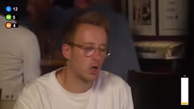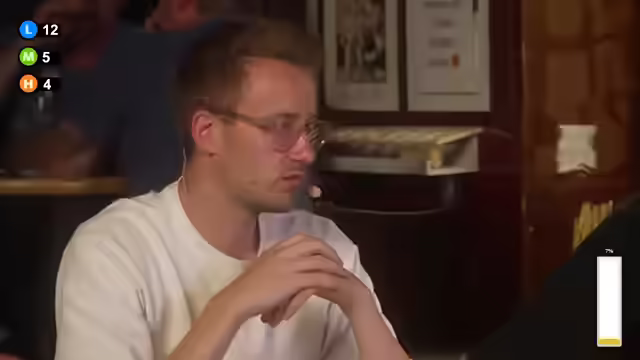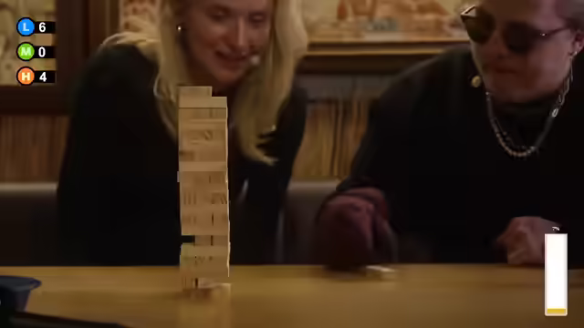 00:34:07Es wird erklärt, dass Merle als Einzige mit zwei Händen spielen darf, Lesan mit einer Hand und Henke mit einem Skihandschuh. Lesan scheidet als Erster aus, nachdem er einen ungünstigen Stein gewählt hat. Merle und Henke spielen weiter, wobei Henke trotz des Skihandschuhs überraschend gut abschneidet. Der Chat spendet Channel-Points, um die ruhige Hand der Spieler zu unterstützen. Henke beeindruckt mit seiner Fingerfertigkeit trotz des Handicaps. Schließlich gewinnt Merle das Spiel, was ihren Punktestand auf fünf erhöht. Nach fünf Spielen führt Lesan mit sechs Punkten, gefolgt von Merle mit fünf und Henke mit vier Punkten. Das nächste Spiel ist Bierdeckel-Flippen.