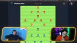 00:33:17Malte und Stylo spielen das interaktive Spiel 'Fight for Side' und wählen jeweils fünf Spieler von Bayern und Frankfurt. Die Auswahl der Spieler wird von der Community im Chat beeinflusst. Simultan meldet sich Lukas Staus aus der Allianz Arena. Er berichtet von der noch ruhigen Stimmung, dem leeren Stadion und dem Essen vor Ort. Er gibt seine Einschätzzung zum Spiel und zu den Aufstellungen, wobei er die Bayern aufgrund der frischen Kräfte und der Verletzungsprobleme Frankfurts klar favorisiert.