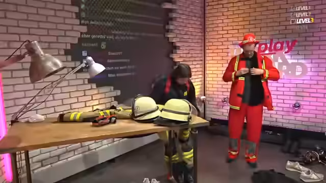 02:35:26Nachdem Level 2 erfolgreich abgeschlossen wurde, kündigt Sina eine neue Herausforderung an: das Anziehen einer Feuerwehruniform. Sie will von ihrem Kollegen erklärt bekommen, wie eine echte Feuerwehruniform aussieht, da ihre aktuelle aus einem Karnevalsladen stammt. Der Kollege zeigt seine persönliche Ausrüstung, inklusive speziell designter Socken und einem Patch mit dem Namen und der Festung im Hintergrund. Er erklärt die Wichtigkeit der Jacke für den Inneneinsatz und die Funktion der Taschen, in denen er unter anderem ein Reddermine-Tool, Taschentücher, Kontaktlinsen, Gehörschutz und Einmalhandschuhe aufbewahrt. Er erklärt, dass die Handschuhe aus Eigenschutz getragen werden, um sich vor Krankheiten und Körperflüssigkeiten zu schützen. Sina fragt nach weiteren Ausrüstungsgegenständen wie Hose, Helm und Handschuhen. Der Kollege erklärt, dass die sandfarbene Kleidung gewählt wurde, um Schmutz besser sichtbar zu machen und die Schwarz-Weiß-Trennung zu gewährleisten. Er zeigt seine Türöffnungsdrähte und erklärt, dass diese nur funktionieren, wenn die Tür nicht abgeschlossen ist. Er präsentiert verschiedene Handschuhe für Brand- und THL-Einsätze sowie seine schweren Feuerwehrstiefel mit Stahlkappe, die für den Inneneinsatz geeignet sind. Abschließend zeigt er seinen Helm mit Atemschutzzeichen und medizinischem Zeichen, das seine Qualifikation als Feuerwehrsanitäter ausweist. Sina erhält einen Prakti-Helm und sie bereiten sich auf die Anzieh-Challenge vor, bei der es darum geht, wer schneller die Feuerwehruniform anziehen kann.