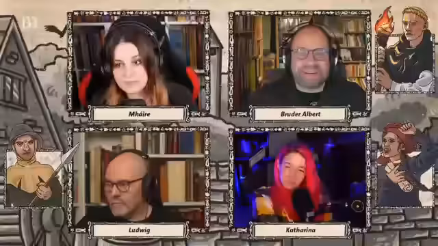 00:14:57Der Stream ist ein historisches Pen & Paper-Spiel mit dem Titel '1525 - Wenn Worte brennen', das den Bauernkrieg behandelt. Die Spielleitung führt durch das Spiel. Anwesend sind die Historiker Stefan (steinwallen) und André (geschichtsfenster), die Fantasy- und Pen-&-Paper-Autorin Lisa (lizagrimm) sowie der Spielleiter Meiri (Meiri Stritter). Es wird darauf hingewiesen, dass die Darstellung von Gewalt teils brutal sein könnte. Ein Q&A mit Historikern und ein Gewinnspiel sind für später angekündigt.