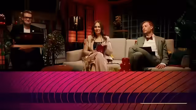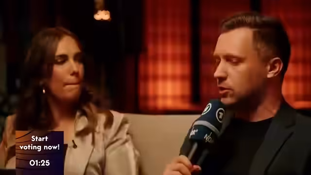 01:44:56Die Moderatorinnen erinnern die Zuschauer daran, im Chat abzustimmen (Punkte 1 bis 8, 10 oder 12). Es wird erklärt, dass das Jury-Finale in etwa 22 Minuten beginnt, wo 50 Prozent der Punkte vergeben werden. Juror Marcel berichtet von seinem Erfahrungshintergrund: Es gibt einen Vorführraum mit guten Boxen und Snacks, strenge Regeln für den Austausch untereinander und eine scharfe Aufsicht. Die Punkte werden von einem Sprecher auf einem Zettel zusammengezählt und in eine Computermaske eingegeben. Er erzählt, dass bei einer Jury-Session die meisten Punkte an Barbara Pravy von Frankreich gingen. Der Prozess wird als 'crazy' und straff beschrieben, um Manipulation vorzubeugen.