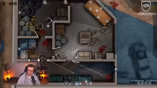 02:44:14Zu Beginn des Stream-Ausschnitts wird eine komplexe, taktische Mission im Spiel Door Kickers gespielt. Es geht um das vorsichtige Vorgehen in einem Gebäude, das Befreien von Geiseln und die Eliminierung von Gegnern. Der Fokus liegt auf koordinierten Bewegungen, dem Einsatz von Flashbangs, dem Absichern von Winkeln und dem sicheren Heranführen an Türen und gefährliche Positionen, um das Team und die Geiseln nicht zu gefährden.
