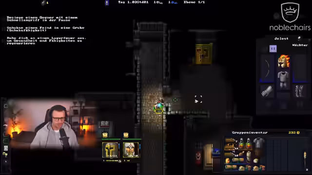 05:22:37Ein heftiger Kampf gegen einen Priester und einen Bogenschützen bricht los. Der Streamer muss strategische Entscheidungen treffen, um seine Charaktere zu positionieren und zu heilen. Ein Assassinen-Mitglied erleidet hohe Schäden und stirbt beinahe, wird aber durch gezielte Heilung und den Einsatz eines bewusstlosen Zustands gerettet. Ein weiterer Kampf gegen einen Berserker, der in Rage verfällt, ist ebenfalls gefährlich, wird aber gemeistert. Ein Schlüssel wird im Dungeon gefunden.