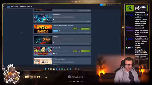 06:15:11Der Streamer stellt neue Spiele vor, darunter das Pixel-Art-MMO Drakantos, das ihn beeindruckt. Es werden diverse Features wie Gildensystem, Housing und PvP vorgestellt. Auch das Spiel Fellowship für heute Abend angekündigt. Es folgt ein Giveaway für 10 Euro Steam-Guthaben, bei dem ein Gewinner gezogen wird. Zum Abschluss informiert der Streamer über seine Streamplanung für die nächsten Tage und verabschiedet sich von der Community.