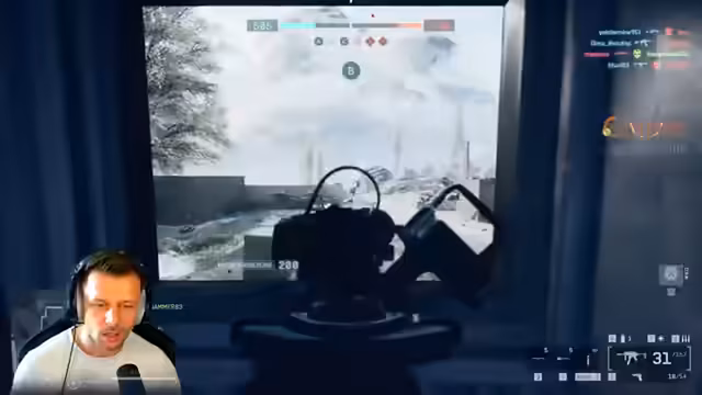 01:28:18Das Gameplay ist intensiv und erfordert taktische Koordination. Der Streamer analysiert die Lage und gibt Anweisungen für das Squad, zum Beispiel 'wir gehen auf D'. Es kommt zu intensiven Kämpfen, in denen das Team versucht, Positionen zu halten und Punkte zu erobern. Der Streamer wird getroffen und muss sich behandeln lassen, während das Spielgeschehen dynamisch bleibt und neue Bedrohungen von verschiedenen Seiten auftauchen.