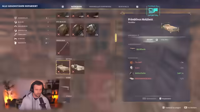 04:53:16Zu Beginn des Stream-Ausschnitts werden grundlegende Spielmechaniken erläutert. Der Streamer zeigt, wie man Gegenstände im Rucksack ausrüstet, indem man mit der Maus rechtsklickt und die Option 'Anlegen' wählt. Es werden verschiedene Materialien wie Stoffe, Gräser und Knochen gesammelt, die für das Crafting von Kleidung und anderen Gegenständen benötigt werden. Das Gespräch deutet an, dass diese Sammelaktivitäten zentral für den Spielfortschritt sind.