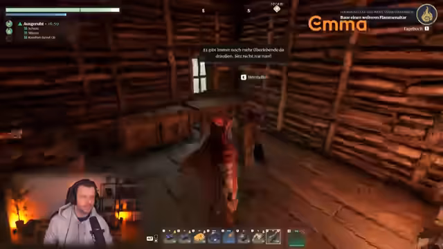05:59:09Im Stream wird der Fokus auf den Aufbau der Siedlung gelegt. Es wird die Anzahl der NPCs und Betten überprüft, wobei es zu einem Bug kommt, bei dem ein NPC nicht in sein Bett geht. Der Streamer erklärt, dass Bäuerinnen Felder anlegen können, und zeigt den Bauprozess neuer Häuser hinter der Basis. Die Platzverhältnisse in den Hütten werden als sehr eng beschrieben, was den Vergleich zu den sieben Zwergen hervorruft. Zudem werden strategische Ressourcen wie Pflanzenfasern und Heuballen gesammelt, um die Siedlung weiter auszubauen.
