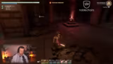 01:13:40Die Spannung steigt, als der Streamer im Miasma-Bereich mit einer tickenden Gift-Zange konfrontiert wird, die ihn innerhalb weniger Sekunden töten würde. Die Situation wird als extrem knapp und aufregend beschrieben. Mit einer kleinen Zeitspanne verliert er das Gift und kann sich in einen Turm retten, was ihm einen erheblichen Adrenalinstoß verschafft.