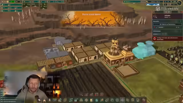 03:39:48Nach Abschluss des Tutorials startet der Streamer das Szenario 'Asai' im Überlebensmodus. Er errichtet sofort die kritische Infrastruktur: Brunnen für Wasser, Holzfällerhütten für Holz und erste Behelfsunterkünfte. Durch zufällige Ereignisse, wie entdeckte Bienen oder gefundene Rucksäcke, erhält die Siedlung positive Boni. Der Höhepunkt ist jedoch der Beginn des Winters, was die Nahrungsproduktion zum Erliegen bringt und die Existenz der Siedlung ernsthaft bedroht.
