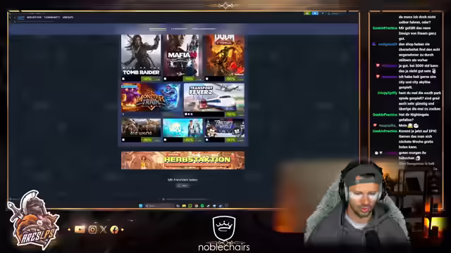 00:13:55Der Stream beginnt mit einem Blick auf den Steam Herbst Sale, bei dem überlegt wird, welche Spiele gekauft werden sollen. Es wird überlegt, Diablo und Vessel of Hatred zusammen zu erwerben, um sie auf dem Steam Deck angenehm spielen zu können. Auch Icarus DLCs stehen zur Debatte, wobei geprüft wird, ob bereits Keys vom Management vorliegen. Die Übernahme von EA durch ein anderes Unternehmen wird kurz angesprochen, wobei betont wird, dass die Leitungsebene von EA bestehen bleibt. Es wird bedauert, dass New World nicht im Sale enthalten ist. Der Streamer testet kurz die Gesichtsentspannungsflaster und spricht über Demos von Spielen und wünscht sich mehr Demos. Es werden verschiedene Spiele wie Hearts of Iron 4, Tempest Rising und Icarus erwähnt und überlegt, ob die Icarus-Pakete gekauft werden sollen. Der Streamer lobt die Einführung von Demos und bedauert das Fehlen von New World im Angebot. Es wird überlegt, ob Transport Fever 2 gekauft werden soll, da der Onkel des Streamers 5000 Stunden darin verbracht hat. Der Streamer entscheidet sich, Transport Fever 2 zu kaufen und überlegt, ob mit Dying Light oder New World gestartet werden soll, wobei die Wahl auf New World fällt. Nightingale wird als unangenehm empfunden, obwohl es gut aussieht. Dune Awakening ist im Angebot, und der Streamer packt einige Spiele in den Warenkorb, darunter Control und Potion Tycoon. Rogue Waters wird ebenfalls in Betracht gezogen. Der Streamer erwähnt, dass Control von den Alan Wake-Machern stammt und dass er es trotz fehlendem Aim spielen konnte. Kingdom of Cards wird als nice bezeichnet und Inkborn wegen seines Stils und des rundenbasierten Kampfsystems gelobt. Die Demo zu einem zweiten Teil eines Spiels wird angesprochen, und der Streamer lobt die kühlenden Beauty-Tipps mit den Augenpads. Es werden DLCs für Icarus in den Warenkorb gelegt, und der Streamer überlegt, Diablo und Vessel of Hatred zu kaufen, um alles zusammen zu haben. Der Streamer erklärt, warum er die Spiele lieber über Steam als über den Browser oder die Battle.net-App spielen möchte, insbesondere auf dem Steam Deck.