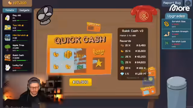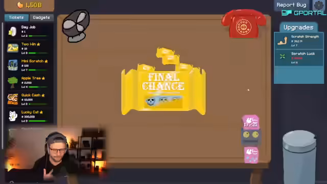 02:09:21Nach ersten Erfolgen investiert der Streamer in den 'Auto-Scratcher', der Tickets automatisch rubbelt. Er optimiert die Kapazität und Stärke des Auto-Scratchers und nutzt das 'Apple Tree'-Gadget, das jedoch risikoreich ist (Würmer können Geld kosten). Durch geschicktes Upgrading von 'Scratch Luck' und 'Speed' erzielt er hohe Gewinne (bis zu 25.000 Dollar) und debattiert über Strategien zur Maximierung der Erträge, während er die Demo-Version des Spiels als Geschenkidee vorstellt.