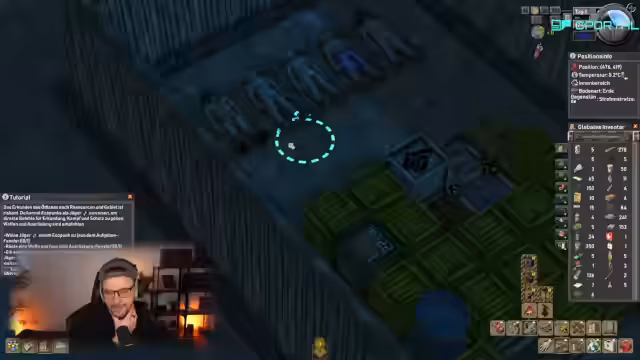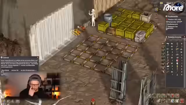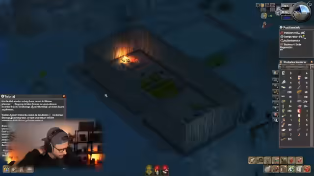 03:26:30Der Streamer demonstriert den automatisierten Gartenanbau: Karotten wachsen, Temperaturen im Innenbereich werden überwacht (durch das Lagerfeuer stabilisiert) und Zäune geschützt. Er optimiert die Raumstruktur (z.B. Platzierung des Lagerfeuers) und zeigt die visuelle Progression der Basis. Das Spiel wird als abwechslungsreich für Management-Fans empfohlen, trotz Herausforderungen wie plötzlichen Kälteperioden und dem Spenderecho, das hier ausgeblendet wird.