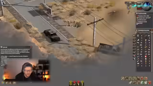 03:18:38Das Spiel gibt Quests aus: Der Streamer baut einen Komposter (um Gras in Kompost für Gärten umzuwandeln) und legt ein 10x10-Gemüsefeld an (mit Karotten und Mais). Er weist Ecopunks als Jäger zu, um das Ödland zu erkunden und gegen Plünderer/Kreaturen zu kämpfen. Dabei werden Waffen (Messer) ausgerüstet und Bewegungsbefehle per Rechtsklick erteilt, was die taktische Tiefe des Spiels unterstreicht.
