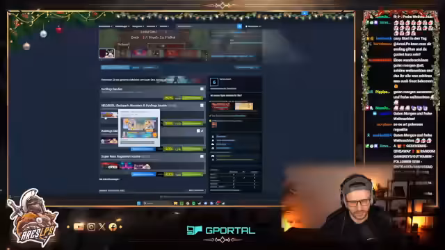 In einer entspannten Atmosphäre werden Spiele wie Super Auto Pets, Teamfight Tactics und Brotato gespielt. Zwischen den Spielrunden gibt es Gespräche über Weihnachtsvorbereitungen, Kindheitserinnerungen an die Festtage und aktuelle Pläne. Musikalische Untermalung und der Austausch über Spielestrategien runden das Programm ab.