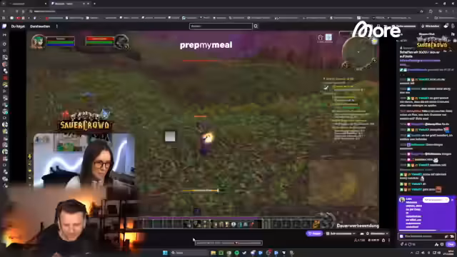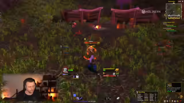 15:33:42Der Stream konzentriert sich auf das gemeinsame Farmen von Monstern in Westfall. Ziel ist es, Beute für Quests und Erfahrung zu sammeln, insbesondere die Jagd auf Tollwut-Bären und andere Kreaturen. Die Kommunikation ist entscheidend, um Beute sicherzustellen und gegenseitige Unterstützung bei der Aufrechterhaltung der Aggression der Monster zu gewährleisten. Dabei werden auch gelegentliche Drops wie Mondpirscher-Items oder wertvolle Ausrüstungsgegenstände wie ein Zauberstab mit 13,6 DPS erwähnt.