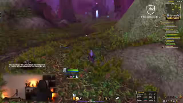 09:22:21Die Gruppe erkundet eine 'eckige Höhle', um eine Escort-Quest mit Chromie abzuschließen. Areslps bemerkt den Mangel an Talismanen, die für alle Gruppenmitglieder benötigt werden, und die ungleichen Drops. Nach Abschluss der Quest werden sie zur nächsten Quest-NPC, Ronda, geleitet. Dabei werden nebenher Mobs und Ressourcen wie Baumwolle und Fausthandschuhe gesammelt, um den Fortschritt nicht zu verlangsamen.