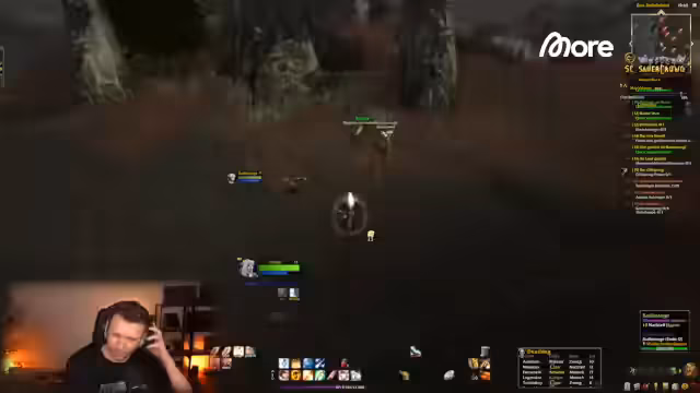 10:11:47Nachdem die technische Situation geklärt ist, macht sich die Gruppe auf den Weg, um eine bestimmte Quest zu erledigen. Der Streamer stellt fest, dass die Gegner (Mobs) sehr stark sind und sich gruppenweise spawnen. Die Dynamik der Kämpfe ist hektisch, da immer mehr Gegner erscheinen. Der Streamer betont, dass es gefährlich ist, sich zu weit von der Gruppe zu entfernen, um nicht allein überwältigt zu werden. Die Quest wird jedoch erfolgreich abgeschlossen.
