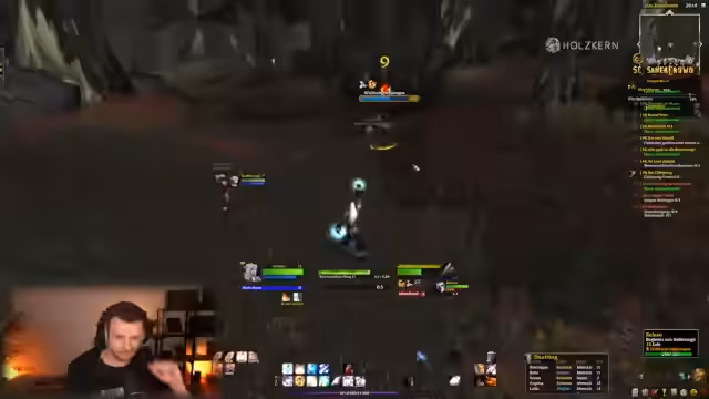 06:01:29Das Stream-Event beginnt mit dem gemeinsamen Grinden im Startgebiet der Nachtelfen. Der Streamer und sein Partner Kobi jagen sehr viele Gegner in einer Höhle, die von einer großen Menge Spielern bevölkert ist. Es wird eine hohe Spawnrate der Gegner erwähnt, was das Gründen sehr effizient macht, und es werden erste Eindrücke über die Stimmung und die Dichte der Spieler ausgetauscht.