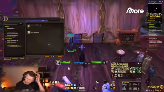 07:22:44Ein interaktionstechnischer Abschnitt. Der Streamer spricht über die Mods auf der Sauerkraut-Seite und erklärt, dass diese den Zugriff auf Clips haben könnten. Er selbst hat keine Mods. Es wird eine Regelbesprechung bezüglich von Gold, Items oder Hilfsleistungen angestoßen. Der Streamer erwähnt die enorme Anzahl an 208 Spielern in seiner Gilde, was die Farm-Gebiete überlaufen lässt. Er ist stolz darauf, mehr WoW-Zuschauer als Just Chatting zu haben.