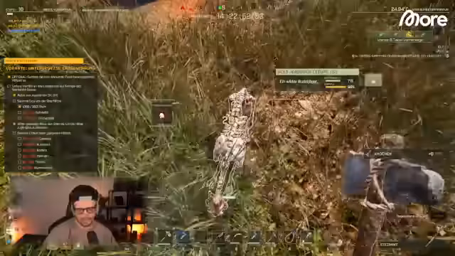 03:16:55Der Streamer beginnt eine Mission, bei der er in eine Höhle vordringen und Ressourcen wie Silizium und Schwefel abbauen muss. Dabei wird er mit neuen Gegnern wie Bienen konfrontiert und muss seine Strategie anpassen. Er entdeckt, dass jede Aktivität, vom Abbau bis zum Jagen, Erfahrungspunkte bringt, die den dauerhaften Charakterfortschritt fördern. Die Atmosphäre und die Gefahren der Höhle werden als sehr intensiv und fesselnd beschrieben.