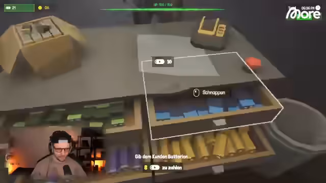 01:01:07Der Streamer plant die Expansion des Ladens, indem er neue Regale bauen möchte, um mehr Lagerraum zu schaffen. Gleichzeitig muss er mit zunehmenden Zombie-Angriffen und dem Zustrom neuer Überlebender umgehen. Er erhält Besuch von einem exotischen Händler, der seltene Waren wie Bogen und Pfeile anbietet. Der Fokus liegt darauf, den Laden zu vergrößern, das Personal effektiver einzusetzen und mit den Herausforderungen der wachsenden Kunden- und Zombie-Zahlen umzugehen.