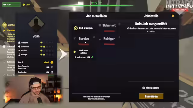 01:33:43Die Verwaltung des Personals steht im Fokus. Es werden spezifische Jobs wie Service, Reinigung und Sicherheit zugewiesen. Neue Mitarbeiter werden eingestellt, deren Gehalt angepasst und ihre Fähigkeiten genutzt, um den Laden effizienter zu betreiben und zu verteidigen.