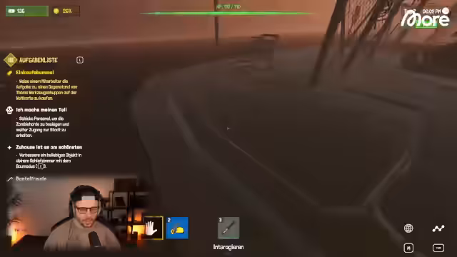 03:51:45Der Stream konzentriert sich auf das Survival-Spiel Icarus, wo der Spieler Ressourcen sammelt und gegen Umweltgefahren kämpft. Nach einem Sturm und einem Bienenangestellt versucht er, seine Basis mit Sauerstoff und Essen zu versorgen. Er stellt fest, dass das Spiel eine klare Progression durch Leveln und Talentpunkte bietet, um Fähigkeiten wie Ausdauer, Sammler-Effizienz und Kampf zu verbessern. Das ständige Sammeln von Rohstoffen wie Holz, Erz und Nahrung ist die Kernaktivität, um zu überleben und seine Ausrüstung zu verbessern.