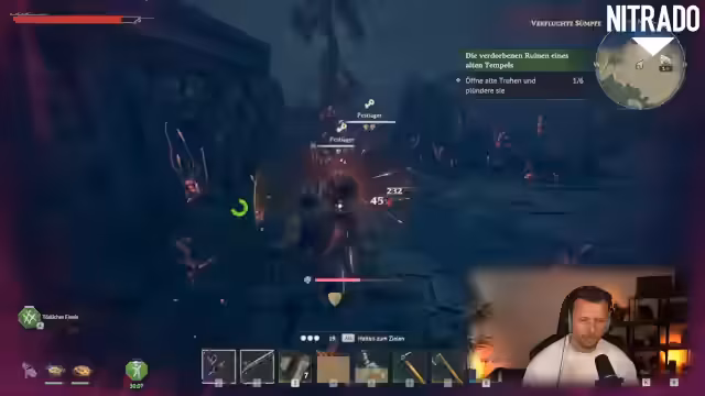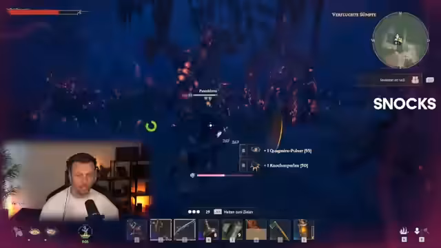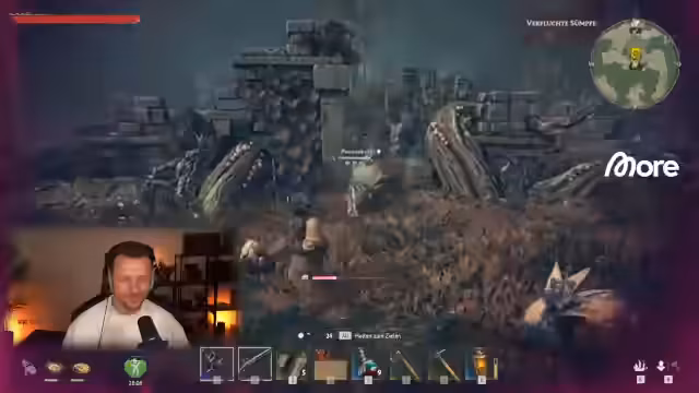 03:05:06Der Streamer erkundet verschiedene Waffen wie Spitzhacke, Axt und Sumpfeisen, während er das Biom abschließen möchte. Er berichtet über Begegnungen mit Krokodilen und Hexen, wobei er mit seiner Pistole und Pestbrecher kämpft. Der Spieler fährt fort, Rüstungen aufzuwerten und entdeckt ein Rapier mit Blutungsschaden, das sich als sehr effektiv erweist. Er findet auch eine Quelle für Ressourcen wie Tumbaga-Barren, die für das Aufwerten von Ausrüstung essentiell sind.
