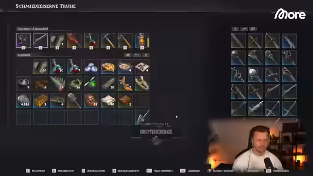 01:59:13Der Streamer entwickelt zahlreiche Verbesserungsideen, darunter Berufe wie Holzfäller oder Steinmetz mit speziellen Sets, Shanti-interaktionen, die den Spieler buffen, und bessere Handelsmöglichkeiten. Besonders wichtig ist ihm die Aufwertungssystem für Waffen und Rüstungen sowie der Umgang mit Loot in Koop-Modi, wo Fairness und gemeinsame Beuteaufteilung diskutiert werden. Probleme mit dem derzeitigen Koop-System werden angesprochen, insbesondere bei der verteilten Aufteilung der Beute.