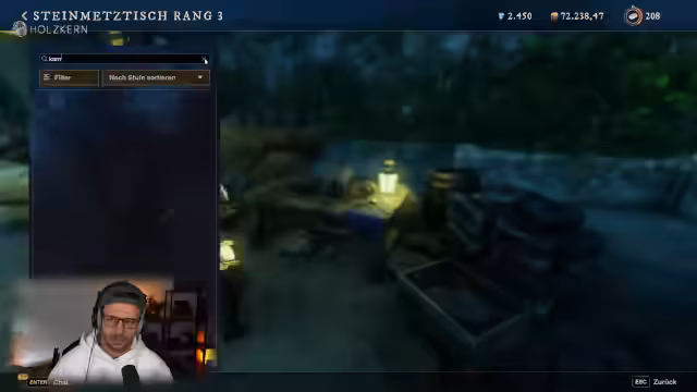 02:03:28Der Streamer startet in das neue Nighthaven-Update von New World, nachdem er die täglichen Quests abgeschlossen hat. Er konzentriert sich auf die wöchentliche Herausforderung 'Heile und Versorgte Mitglieder bei nicht freundlichen Zielen', die 10.000 Erfahrungspunkte bringt. Dabei erkundet er das Gebiet und stellt fest, dass es sich um eine King-of-the-Hill-ähnliche Aktivität handelt. Er checkt auch kurz sein Inventar und beginnt, seine Ausrüstung zu optimieren, indem er den Griff einer Waffe verbessert.