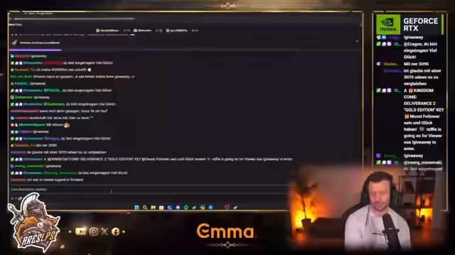 03:18:17Das erste Giveaway findet um 16 Uhr statt, bei dem Kingdom Come Deliverance 2 Gold Edition verlost wird. Ein weiteres Giveaway ist für später geplant, etwa zwischen 20 und 22 Uhr. Die Drops laufen aktuell, und nach vier Stunden Zuschauen erhält man alle. Es wird erklärt, wie man Pros mit dem Twitch-Profil verbindet, um zusätzliche Belohnungen zu erhalten. Die Entwickler haben einen Day One Patch angekündigt. Das Spiel wird als Rollenspiel, Mittelalter-Open-World-Einzelspieler-Erlebnis mit realistischer Ego-Perspektive und komplexer Handlung beschrieben. Es bietet Action-Abenteuer im 3D-Format und eine spannende Geschichte im 15. Jahrhundert. Es gibt einen Preload mit einer Größe von etwa 80 GB. Das Spiel wird möglicherweise auch über GeForce Now spielbar sein. Die Drops laufen seit 3 Stunden und 35 Minuten. Das Spiel wird mit einer Mischung aus verschiedenen Kampfsystemen verglichen, darunter Mountain Blade, Chivalry, For Honor, Gothic und Skyrim.