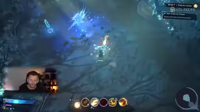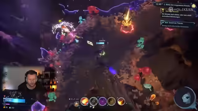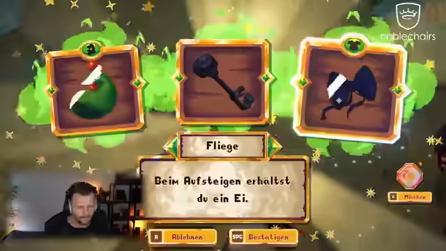 02:31:12Es beginnt mit der Beschwörung und der Herstellung des ersten Zauberstabs, einem einfachen Holzstab ohne Spezialeffekte, genannt 'Britzelschmitzl', der Feuerschaden verursacht. Nach der Benennung des Zauberstabs wird dieser jedoch nicht an Trainingspuppen getestet, sondern es geht direkt in die erste Runde in einem Frosch-Wald. Während des Spiels wird ein Levelaufstieg erreicht und der Meteor als Fähigkeit gewählt. Es wird auf das Einsammeln von Eiern und das Besiegen von Gegnern fokussiert, wobei der Flammenwerfer als nützlich empfunden wird. Die Bewegung und das Ausweichen vor Angriffen sind zentral, um Schaden zu vermeiden und das Spielgeschehen zu meistern. Das Gameplay wird als etwas 'matschig' beschrieben, aber die Steuerung mit WSD als klassisch und gut empfunden. Das Ziel ist es, Nester einzunehmen, Eier zu gewinnen und Level aufzusteigen, um den Schaden zu erhöhen und die Abklingzeiten zu reduzieren.