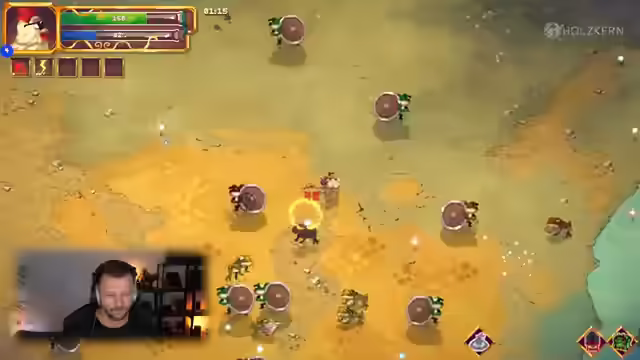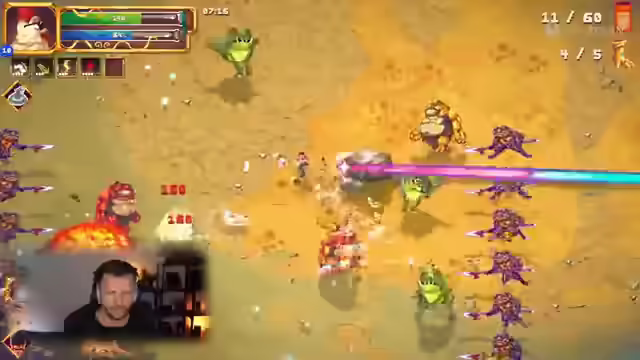 02:36:34Es werden Brunnen genutzt, um Leben wiederherzustellen, und viele Münzen gesammelt. Nach einem Levelaufstieg wird der Blitz für mehr Schaden gewählt. Das Spiel wird für seinen Detailgrad und die Darstellung gelobt, besonders angesichts des niedrigen Preises. Es wird auf Patrouillen geachtet und Bauernhöfe geholt, um mehr Hühner zu bekommen. Die Abklingzeit der Zauber wird als sehr wichtig erachtet, um schneller Spells durchzubringen. Es werden verschiedene Items eingesammelt, darunter solche, die das Bewegungstempo erhöhen und Schaden verursachen, solange man in Bewegung bleibt. Meteor wird erneut gewählt und ein Brunnen zur Lebensregeneration genutzt. Das Spielgeschehen wird als verpixelt, aber detailliert beschrieben. Es wird überlegt, wie die Metaprogression im späteren Spielverlauf aussehen könnte und Satelliten als Fähigkeit ausgewählt.