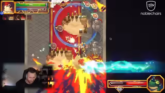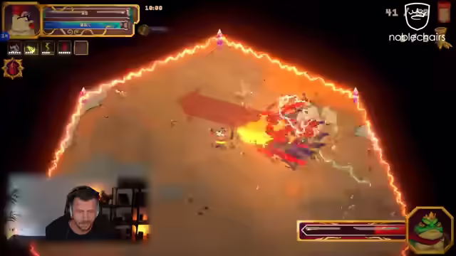 02:48:32Es wird ein Pylon eingesammelt und die Musik als 'funny' empfunden, aber auch als störend wahrgenommen. Es wird ein Hühnerstall eingenommen, um weitere Hühnchen zu erhalten, und ein Brunnen gefunden, um Leben zu regenerieren. Das Spielgeschehen wird als detailliert, aber auch als unübersichtlich beschrieben. Ein Schatzgoblin wird entdeckt und der Flammenwerfer verstärkt. Es wird ein Blitzei gewonnen und das Nest erneut mitgenommen. Es wird überlegt, ob ein Boss kommt. Es werden weitere Pylone eingesammelt und ein Elektrofeld mitgenommen. Es wird ein Zwischenboss bekämpft und über das Chaos im Spiel diskutiert. Es werden rote Coins eingesammelt und automatische Einsammelfunktionen vermisst. Ein Hühnerstall wird aufgesucht und der Laser ausgebaut. Es werden Anspielungen auf andere Spiele entdeckt und ein Pilz gefunden, der detoniert.