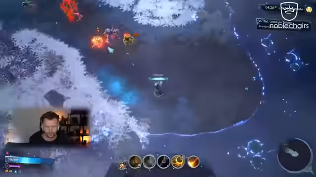 02:33:32Der Streamer beginnt mit dem Spiel und entscheidet sich für den Meteor als Fähigkeit, der kurz darauf erscheint. Er kämpft gegen Gegner in der Nähe eines Feuers und wird getroffen. Das Gameplay beinhaltet das Sammeln von Gegenständen und das Level-Up-System. Die Mechanik umfasst das Mischen und Verbannen von Fähigkeiten, wobei der Streamer den Blitz als Fähigkeit wählt. Er sammelt Eier und kämpft gegen Patrouillen und Gegner mit Schilden. Das Gameplay wirkt matschig, was auf Steuerungs- oder Darstellungsprobleme hindeutet.