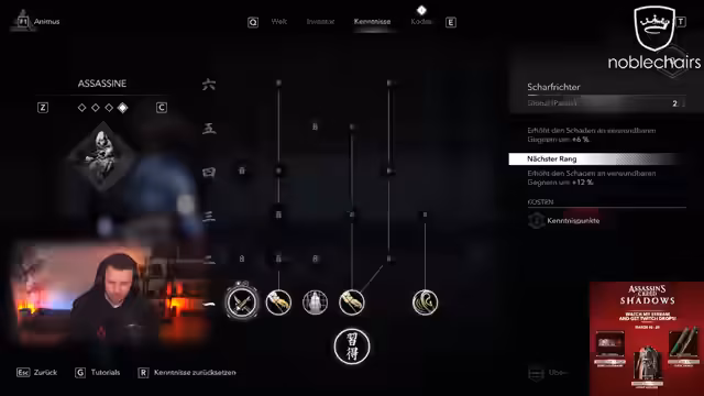06:15:08Es wird ein schwerer Angriff erwähnt und dass man Holz hacken kann. Der Streamer muss einen Turm hochklettern und Loot finden. Ein Slide wird als geil bezeichnet, besonders in Stealth-Situationen. Die Musik passt sich dem Stealth-Modus an. Es wird erwähnt, dass die aktuelle Hauptmission ausgeklammert wurde, um die offene Welt zu erkunden. Der Twitch Shop und Ubisoft Connect werden erwähnt, um Items zu claimen. Es wird eine schlitzende Bauernkleidung gefunden. Es wird festgestellt, dass es kaum Bugs gibt. Der Streamer findet Assassin's Creed bis jetzt stark und ist happy. Ein letztes Attentat wird gesucht und goldene Sachen werden entdeckt. Eine neue Waffe Stufe 6 wird gefunden, aber das Anlegen ist noch eingeschränkt, da der Streamer selbst noch nicht Level 6 ist. Die Glewe (Naginata) wird als gefährlich bezeichnet. Der Streamer zeigt Standard-Content abseits der Hauptmission und findet die Grafik mega gut. Eine legendäre Bauernkleidung wird gefunden, die 3000 Experience bringt. Twitch-Drops werden erwähnt, darunter ein Stirnband. Der Streamer ist Level 6 geworden. Es gibt verschiedene Optionen im Codex, wie Shop, Fotomodus und Datenbank. Es wird erklärt, wie man zur Quest zurückkehrt und schnellreisen kann. Die Grafik wird als crazy bezeichnet und es gibt Zacken im Brotmesser.