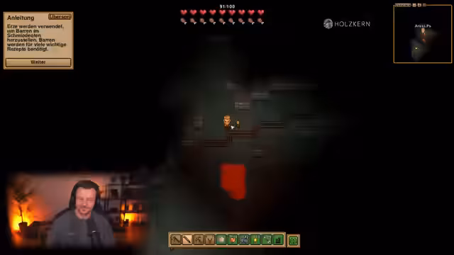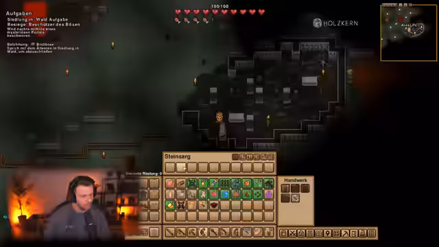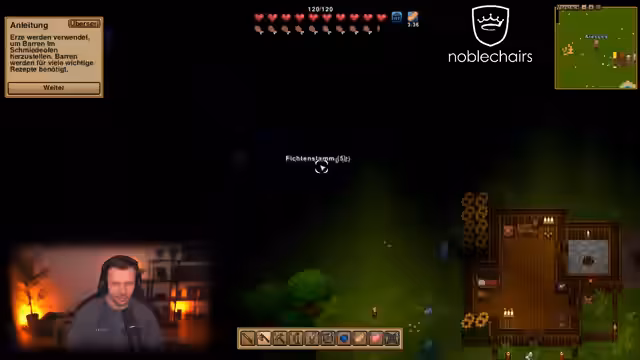 00:36:07Der Streamer beginnt ein neues Spiel in "Nessesse" und erstellt einen Charakter. Er erklärt die Bedeutung des Namens "Asai" für seine Spielwelten. Nach der Charaktererstellung startet er das Tutorial und lernt die grundlegenden Spielmechaniken, wie das Fällen von Bäumen und das Herstellen von Fackeln. Er interagiert mit einem Ältesten, der ihm Tipps gibt und ihn in die Spielwelt einführt. Der Streamer erkundet die Umgebung, sammelt Ressourcen und stellt eine Werkbank her. Er bemerkt, dass das Spiel ein Grafik-Update erhalten hat und ist positiv überrascht. Er platziert die Werkbank und stellt eine hölzerne Spitzhacke her. Anschließend betritt er eine Höhle, um Erz abzubauen. In der Höhle trifft er auf Gegner und baut Stein und Kupfererz ab. Er entdeckt einen Hebel und eine TNT-Ladung, die er zur Zerstörung von Steinen verwendet. Der Streamer findet Fackeln und bekämpft Untote. Er vergleicht das Spielgefühl mit Minecraft und Stardew Valley.