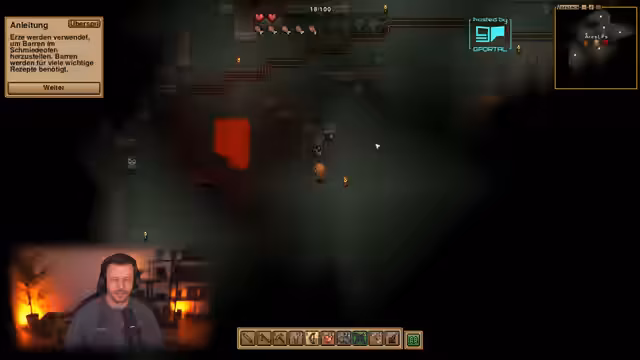 01:24:51Ein Händler erscheint an der Flagge und bietet Waren wie Schneemützen und Piratenkarten an. Tiere können gekauft werden. Beim Erkunden eines Dungeons wird ein Kobold getötet, der sich in drei kleinere Gegner aufteilt. Das Gold wird eingesammelt. Im Dungeon wird Lava gefunden und der Streamer erhält ein mysteriöses Portal, das für einen Bosskampf benötigt wird, der aber vorerst nicht genutzt wird.