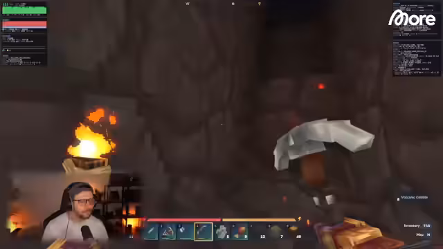 01:21:19Der Stream beginnt mit der Herausforderung, aus einer tiefen Höhle zurückzukehren, wobei der Fackelnverbrauch ein Problem darstellt. Der Weg wurde als sehr mühsam beschrieben. Um den Fortschritt zu beschleunigen, wird der Bedarf an Eisenspitzhacken betont. Während der Erkundung werden verschiedene Ressourcen gesammelt, wie Fische und Erze, und in einem Schmelzofen verarbeitet. Die Höhle selbst wird als verwinkelt und für Klaustrophobie anfällig eingestuft, was die Orientierung erschwerte.