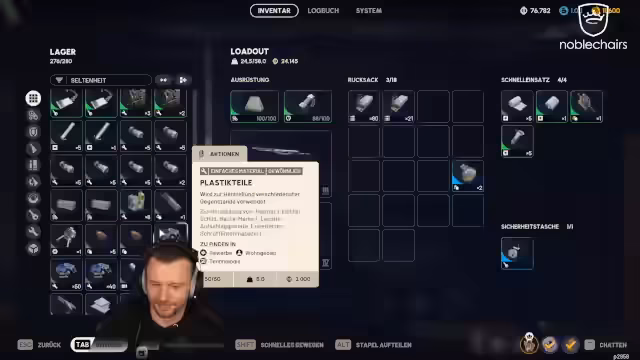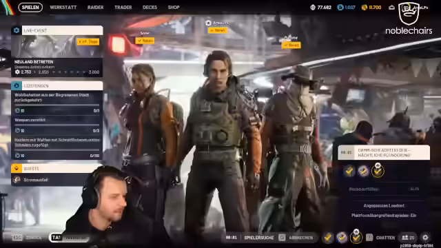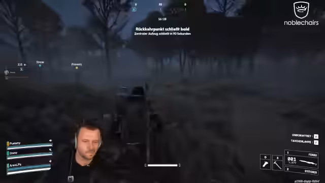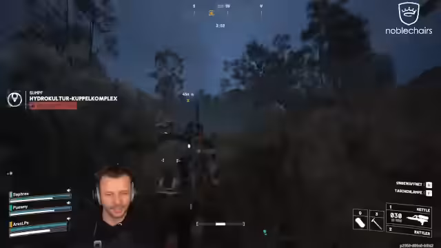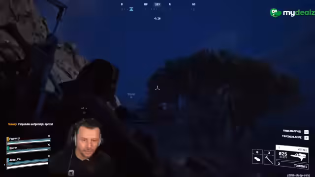 04:27:48Die Spieler diskutieren über ihre Lieblingssüßigkeiten, wobei Erfrischungsstäbchen, Kinder Bueno, Twix, Lakritz, Knusperfocken, Marzipankartoffeln, Milchschnitte und Donuts genannt werden. Währenddessen überlegen sie, ob sie ein anderes Sonnen-Event anfahren sollen, entscheiden sich aber, das Risiko einzugehen, da sie nur Gratis-Loadouts haben. Die Suche nach leichter Munition ist ebenfalls ein Thema, da ein Spieler nur noch 57 Schuss hat. Die Sonde, die sie suchen, scheint in der Nähe zu sein, und Schüsse in der Umgebung deuten auf feindliche Aktivitäten hin. Die Spieler müssen entscheiden, ob sie die Sonde verfolgen oder sich auf andere Ziele konzentrieren, um Punkte zu sammeln.
